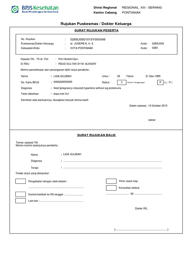 Contoh Surat Rujukan Bpjs Dari Faskes 1 Satu